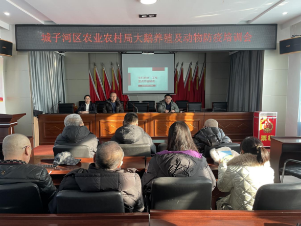 临近春节,畜禽产品消费进入旺季,同时也是动物疫病高发期,为筑牢动物防疫安全防线,保障畜牧业生产与公共卫生安全及破解大鹅养殖技术瓶颈,助力特色产业高质量发展。近日,区农业农村局组织科技特派员深入辖区两乡,开展动物防疫“先打后补”政策宣讲和大鹅养殖技术专项培训,切实把政策补贴和饲养技术服务于民。