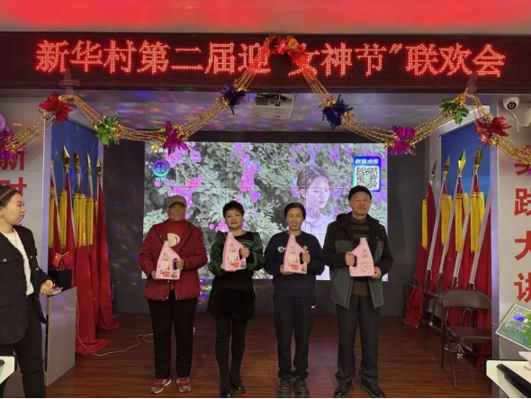 新华村举办第二届“三八”联欢活动,村民自编自导歌曲、舞蹈、小品等节目,展现新时代女性风采。活动现场还表彰了“好婆婆”“好儿媳”,弘扬家庭美德。城子河村文艺联欢会增设“蔬菜格子挑战”“蒙眼踏步走”“杯子叠叠高”等趣味游戏,妇女们踊跃参与,展现团结协作精神。
